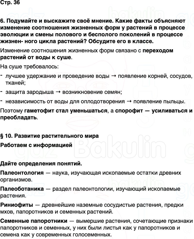 6. Подумайте и выскажите своё мнение. Какие факты объясняют изменение соотношения жизненных форм у растений в процессе эволюции и смены полового и бесполого поколений в процессе жизнен- ного цикла растений? Обсудите его в классе.