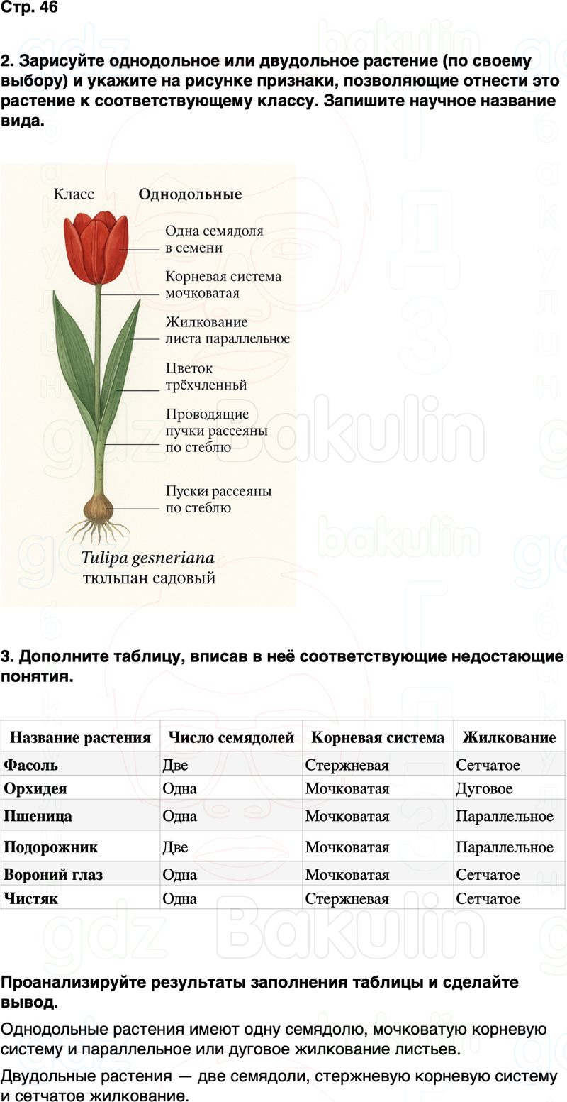 2. Зарисуйте однодольное или двудольное растение (по своему выбору) и укажите на рисунке признаки, позволяющие отнести это растение к соответствующему классу. Запишите научное название вида.