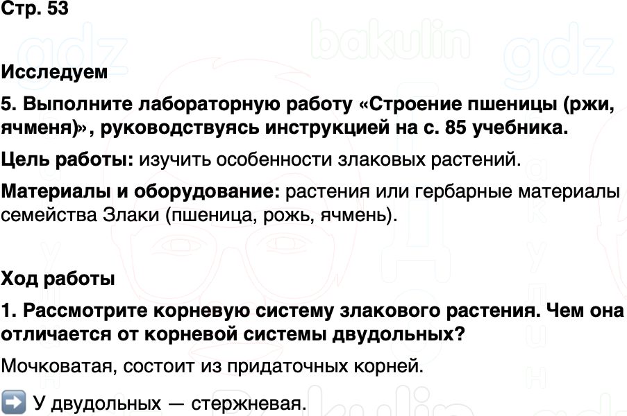 5. Выполните лабораторную работу «Строение пшеницы (ржи, ячменя)», руководствуясь инструкцией на с. 85 учебника.