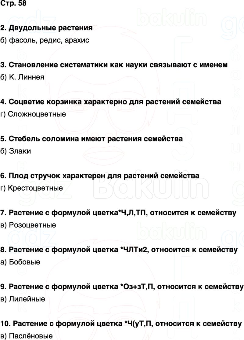 7. Растение с формулой цветка*Ч,Л,ТП, относится к семейству а) Бобовые