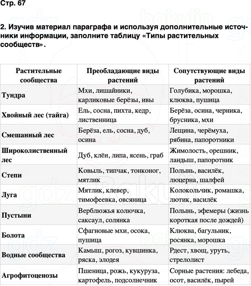 2. Изучив материал параграфа и используя дополнительные источ- ники информации, заполните таблицу «Типы растительных сообществ».