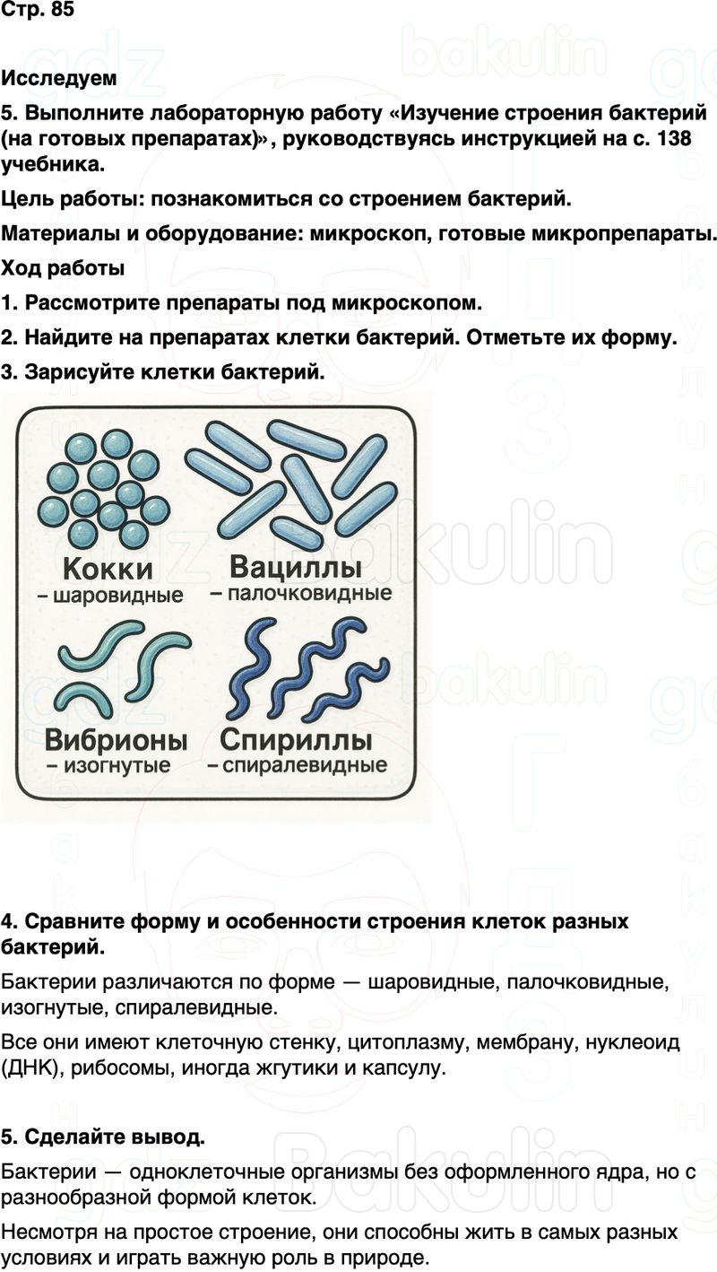 5. Выполните лабораторную работу «Изучение строения бактерий (на готовых препаратах)», руководствуясь инструкцией на с. 138 учебника.