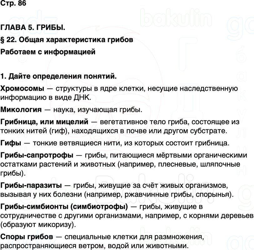 ГЛАВА 5. ГРИБЫ.§ 22. Общая характеристика грибовРаботаем с информацией