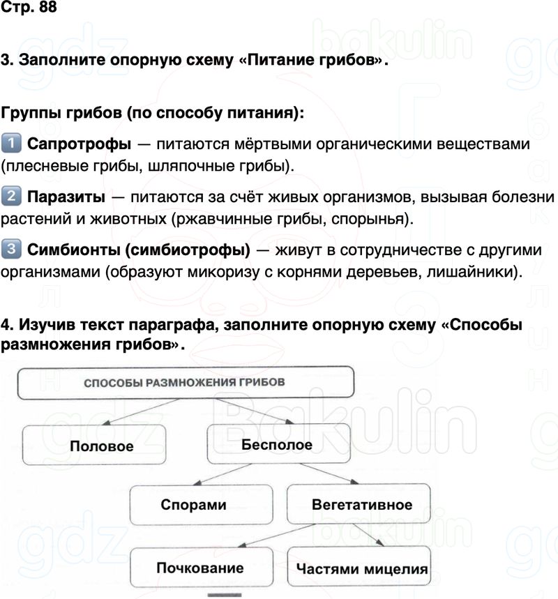 4. Изучив текст параграфа, заполните опорную схему «Способы размножения грибов».