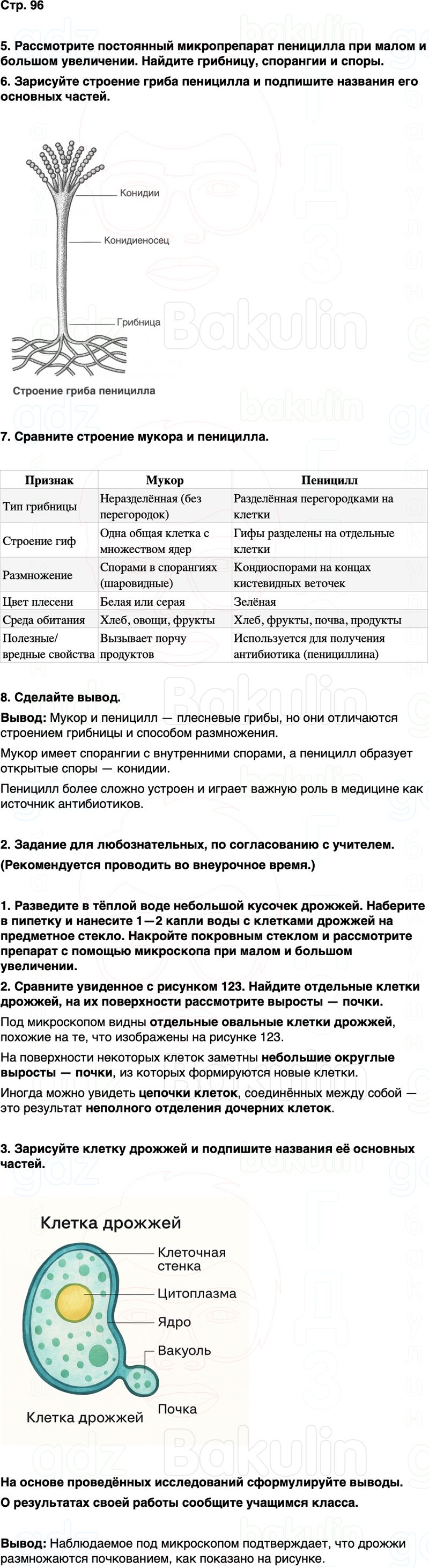6. Зарисуйте строение гриба пеницилла и подпишите названия его основных частей.
