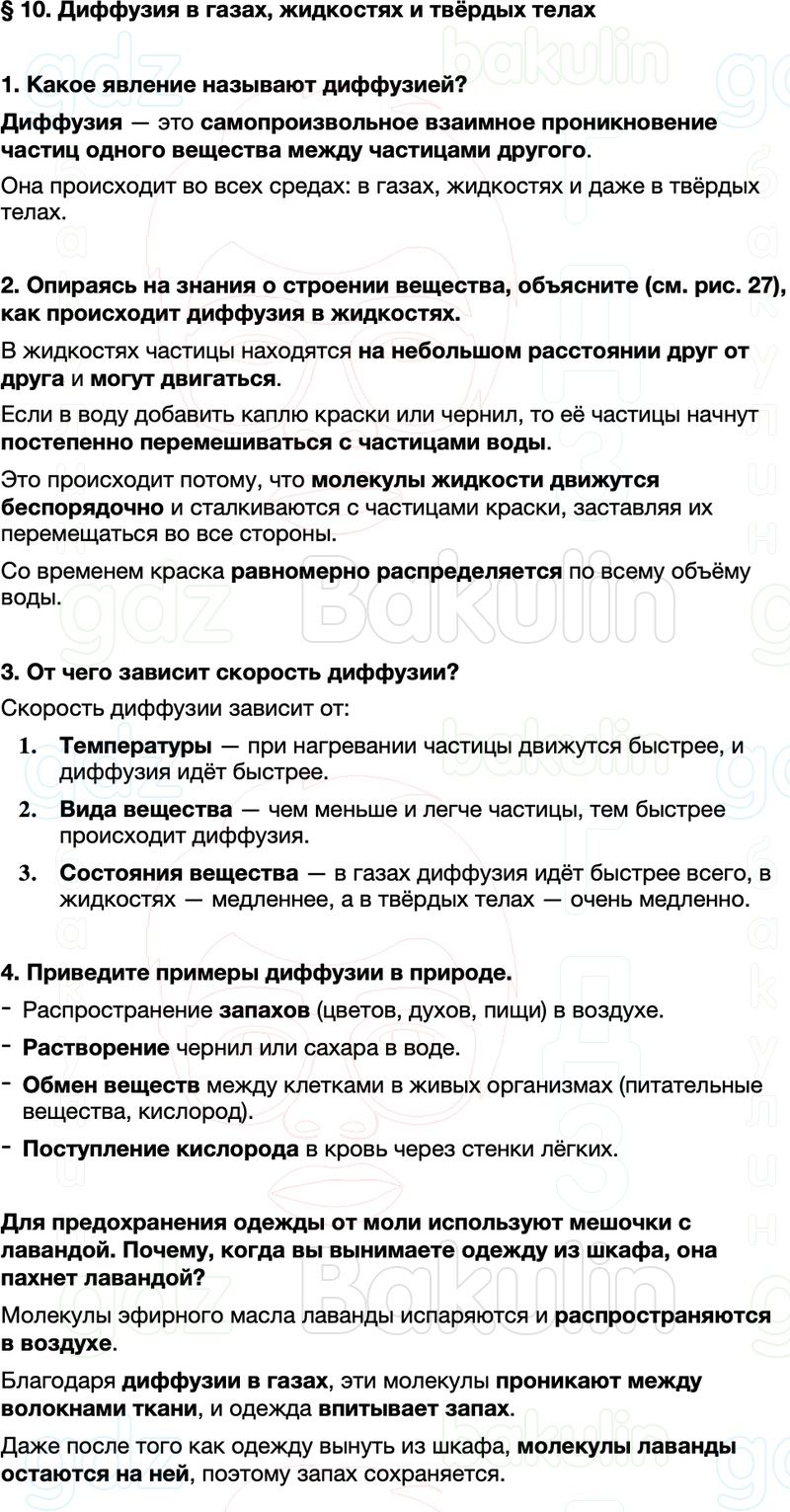 § 10. Диффузия в газах, жидкостях и твёрдых телах