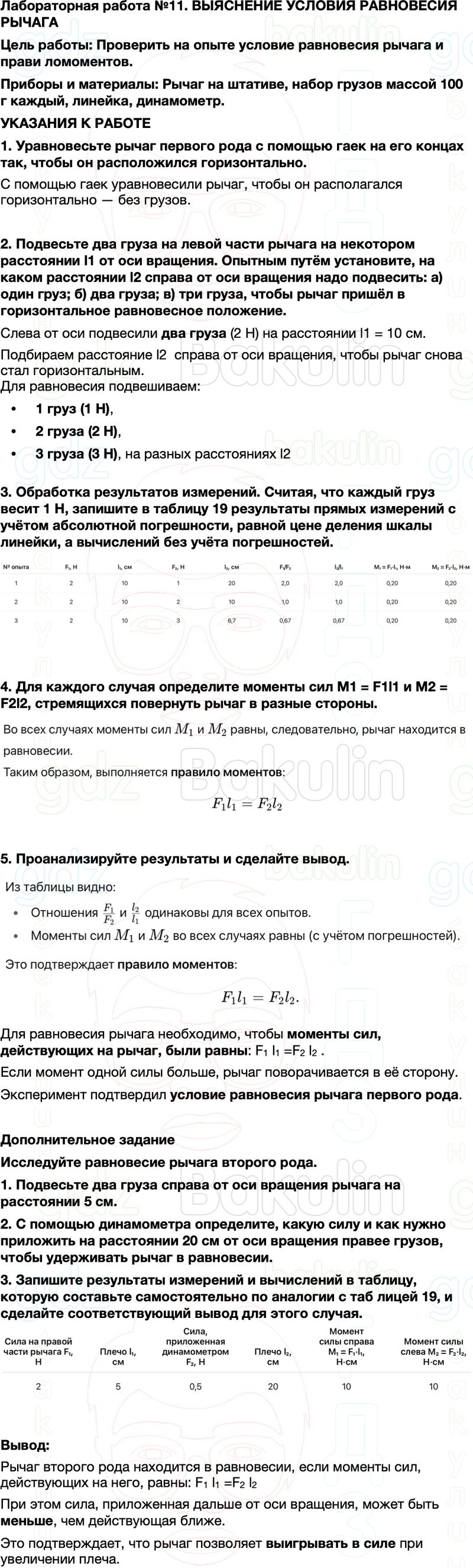 Лабораторная работа №11. ВЫЯСНЕНИЕ УСЛОВИЯ РАВНОВЕСИЯ РЫЧАГА