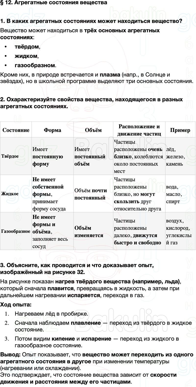 2. Охарактеризуйте свойства вещества, находящегося в разных агрегатных состояниях.