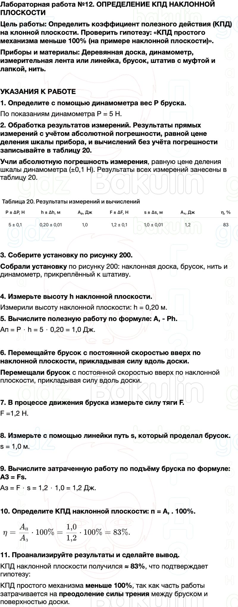 Лабораторная работа №12. ОПРЕДЕЛЕНИЕ КПД НАКЛОННОЙ ПЛОСКОСТИ