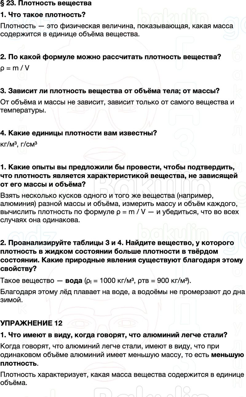 1. Какие опыты вы предложили бы провести, чтобы подтвердить, что плотность является характеристикой вещества, не зависящей от его массы и объёма?
