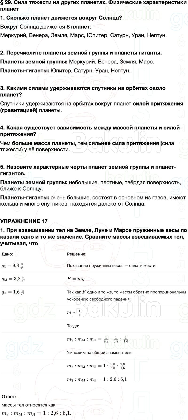 § 29. Сила тяжести на других планетах. Физические характеристики планет