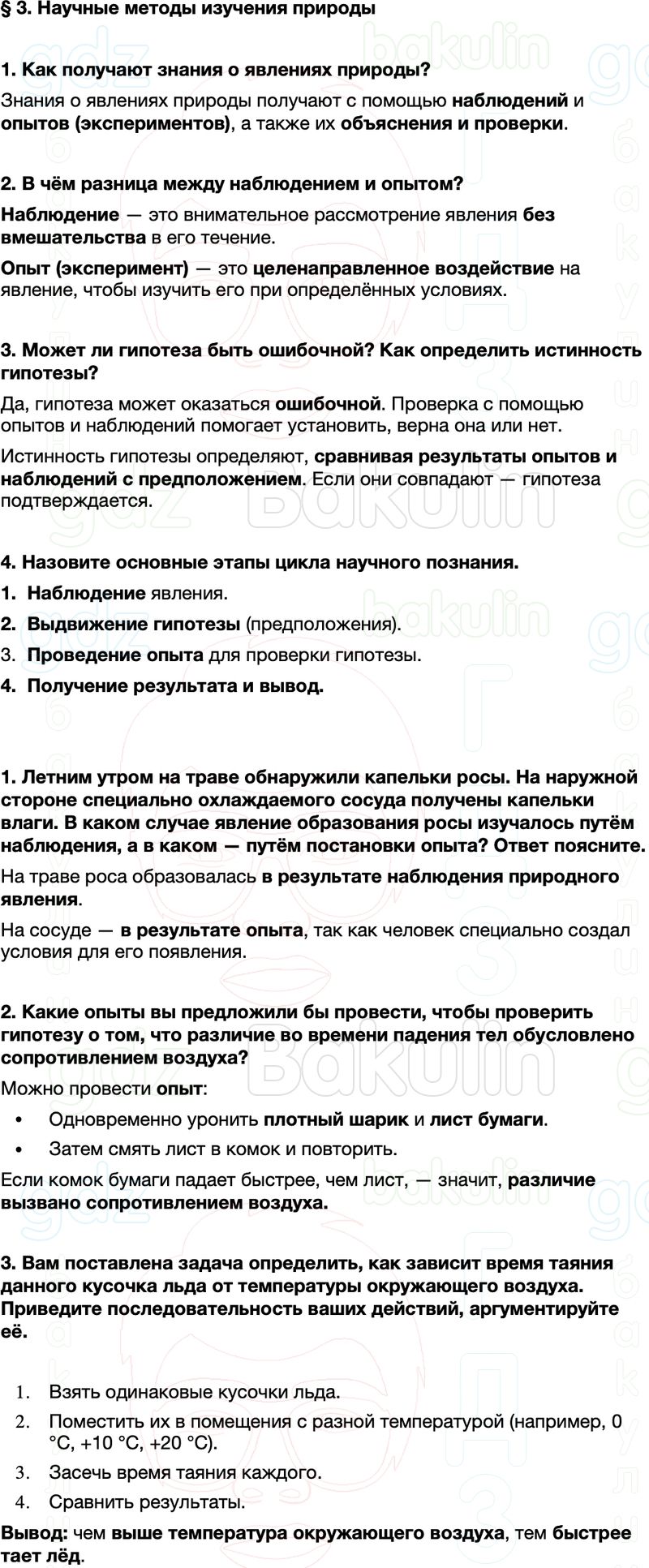 1. Летним утром на траве обнаружили капельки росы. На наружной стороне специально охлаждаемого сосуда получены капельки влаги. В каком случае явление образования росы изучалось путём наблюдения, а в каком — путём постановки опыта? Ответ поясните.