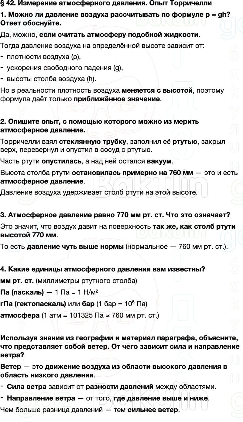 § 42. Измерение атмосферного давления. Опыт Торричелли
