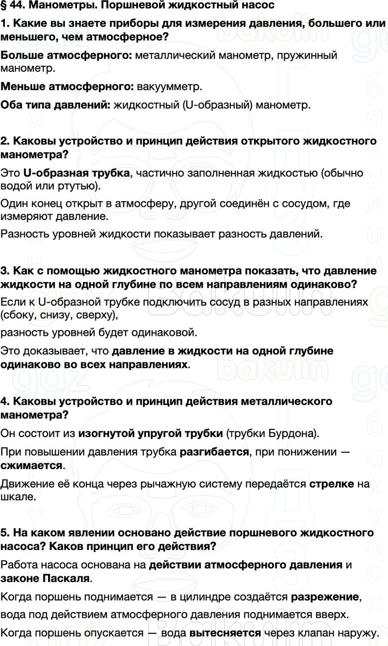 1. Какие вы знаете приборы для измерения давления, большего или меньшего, чем атмосферное?