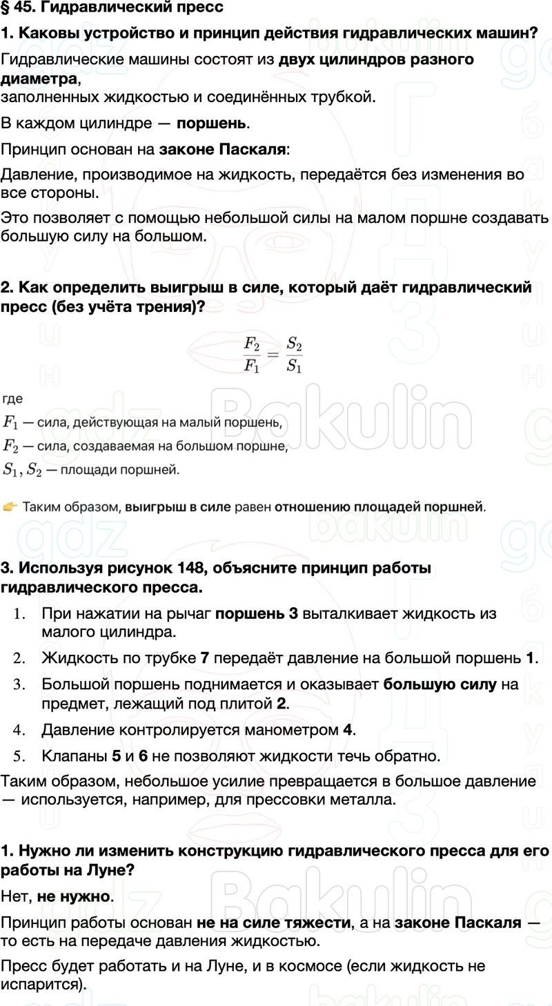 3. Используя рисунок 148, объясните принцип работы гидравлического пресса.