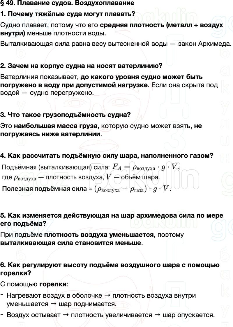 5. Как изменяется действующая на шар архимедова сила по мере его подъёма?