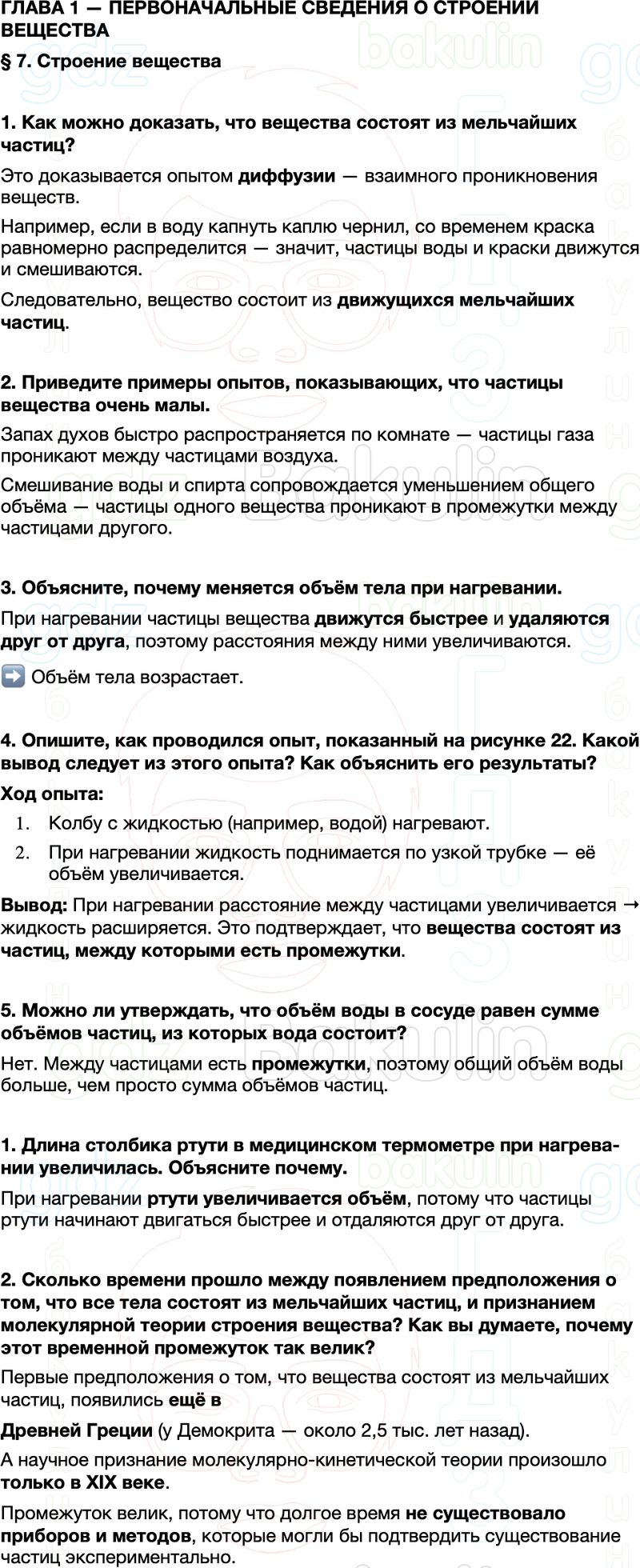 5. Можно ли утверждать, что объём воды в сосуде равен сумме объёмов частиц, из которых вода состоит?