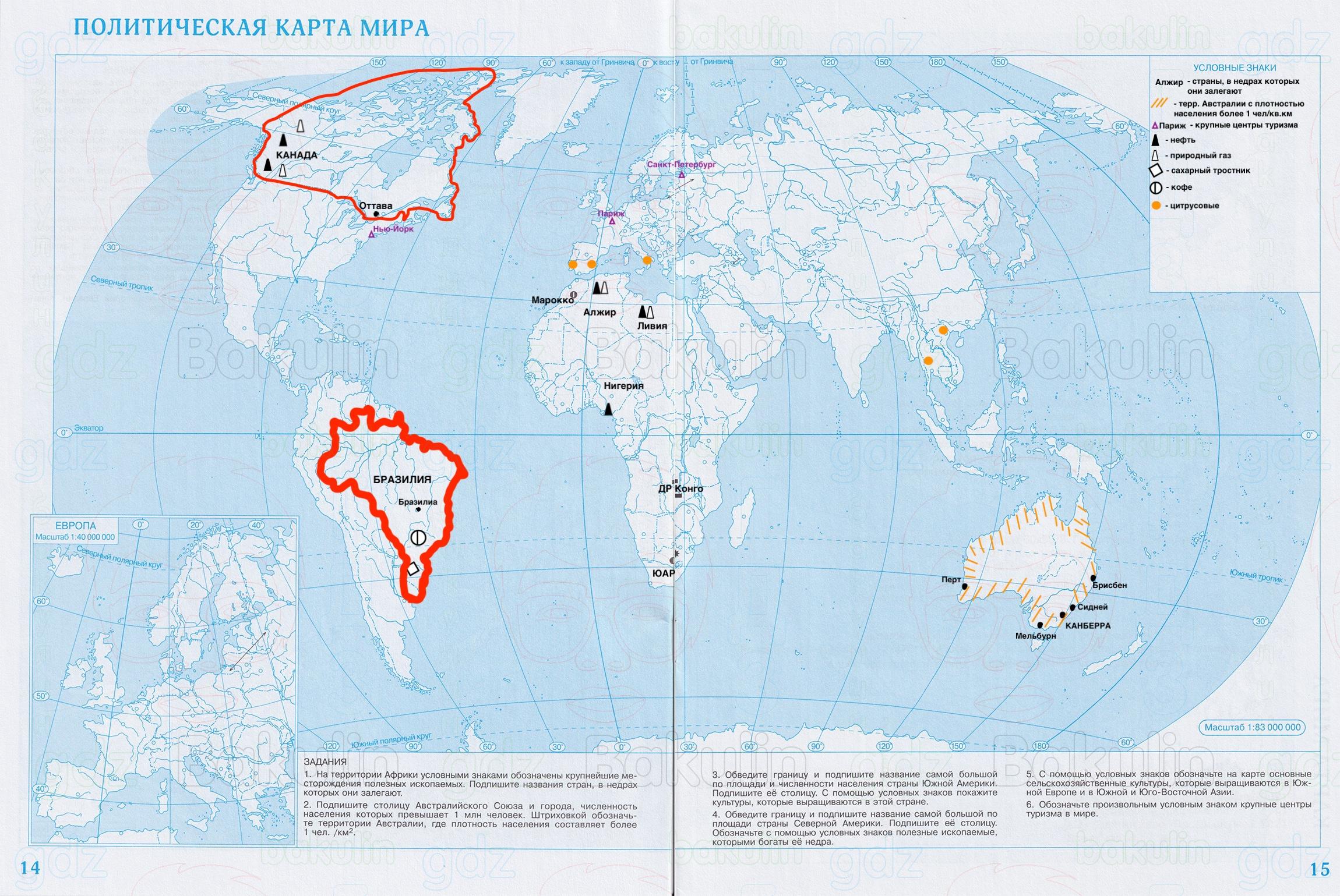 Контурная карта Политическая карта мира - страница 14-15