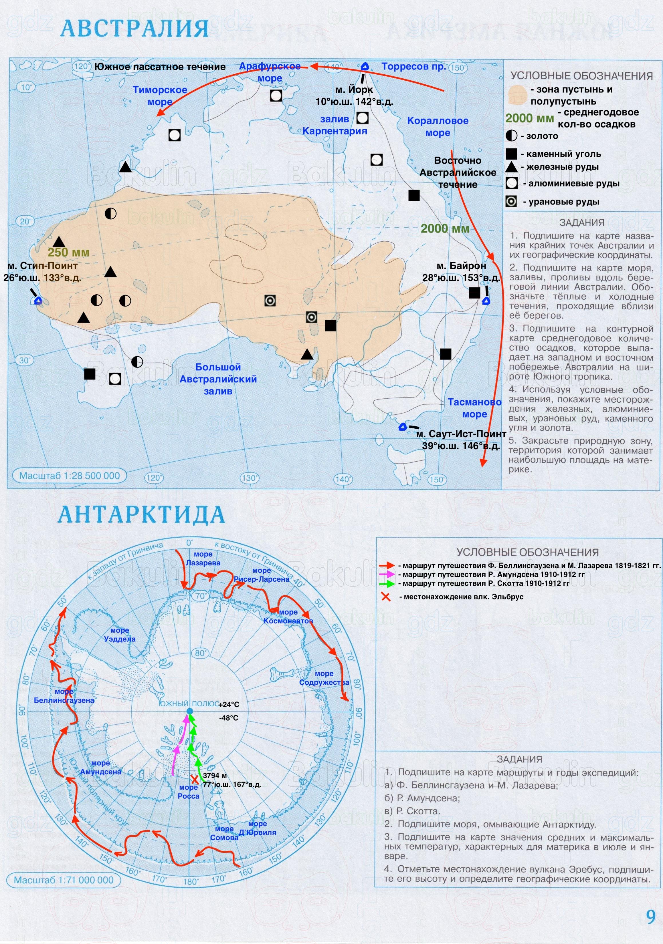 1. Подпишите на карте названия крайних точек Австралии и их географические координаты.