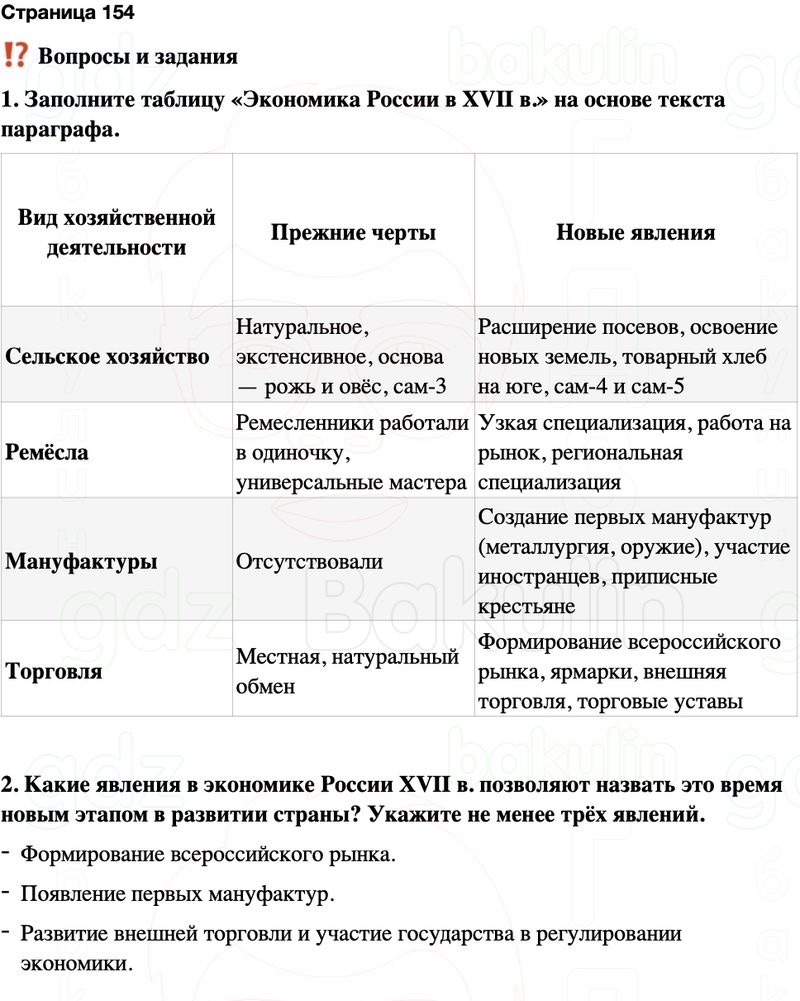 1. Заполните таблицу «Экономика России в XVII в.» на основе текста параграфа.