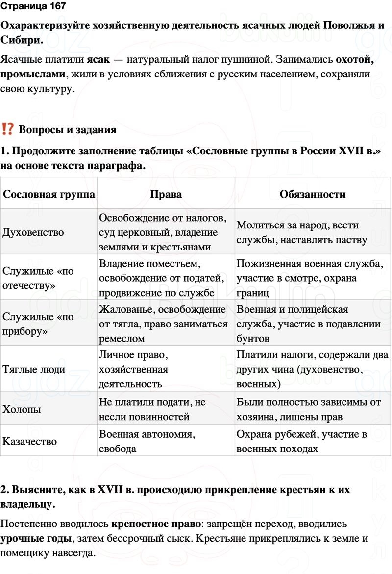 1. Продолжите заполнение таблицы «Сословные группы в России XVII в.» на основе текста параграфа.