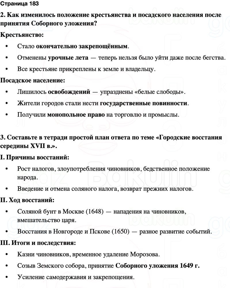 3. Составьте в тетради простой план ответа по теме «Городские восстания середины XVII в.».