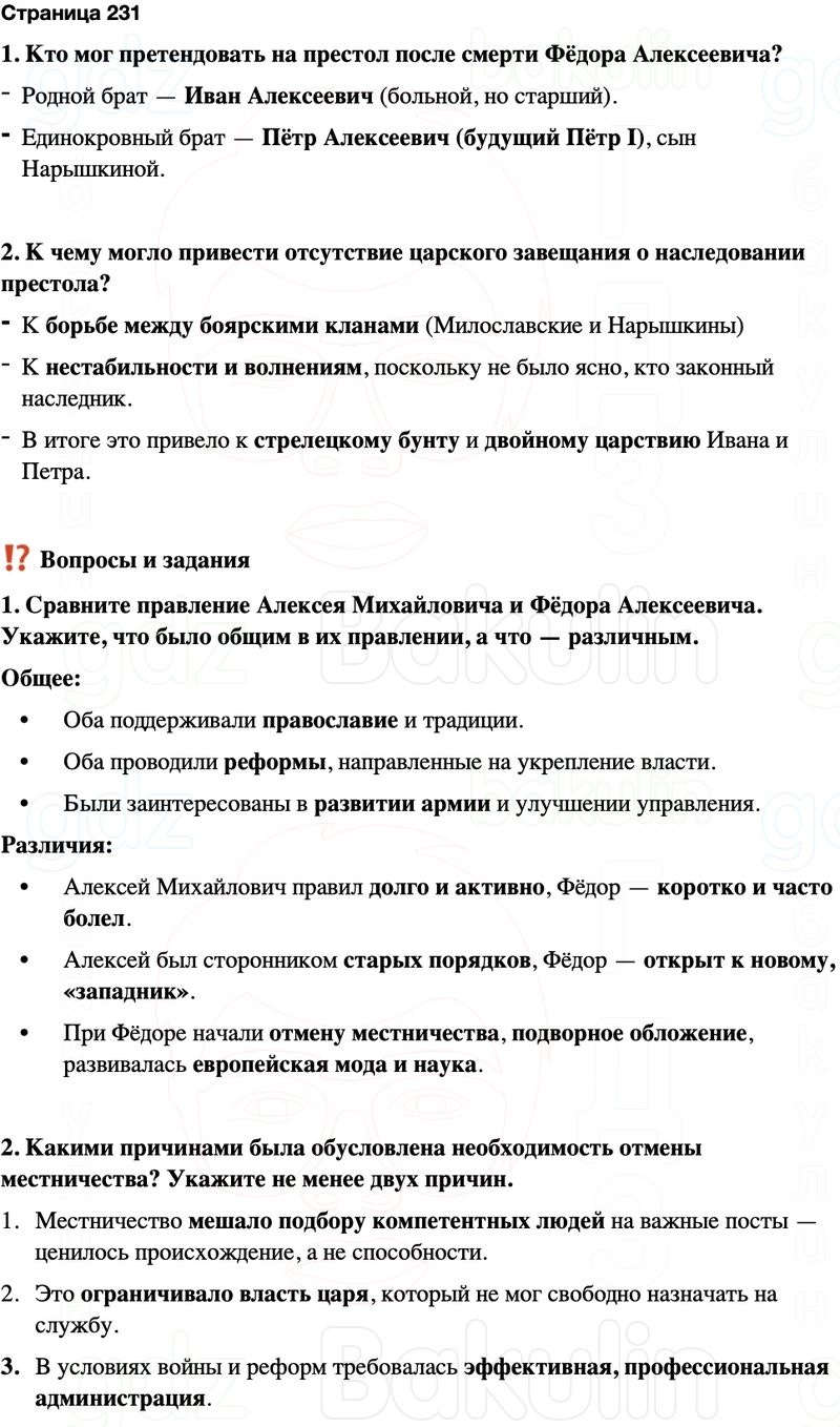 1. Сравните правление Алексея Михайловича и Фёдора Алексеевича. Укажите, что было общим в их правлении, а что — различным.