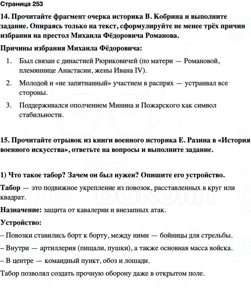 14. Прочитайте фрагмент очерка историка В. Кобрина и выполните задание. Опираясь только на текст, сформулируйте не менее трёх причин избрания на престол Михаила Фёдоровича Романова.