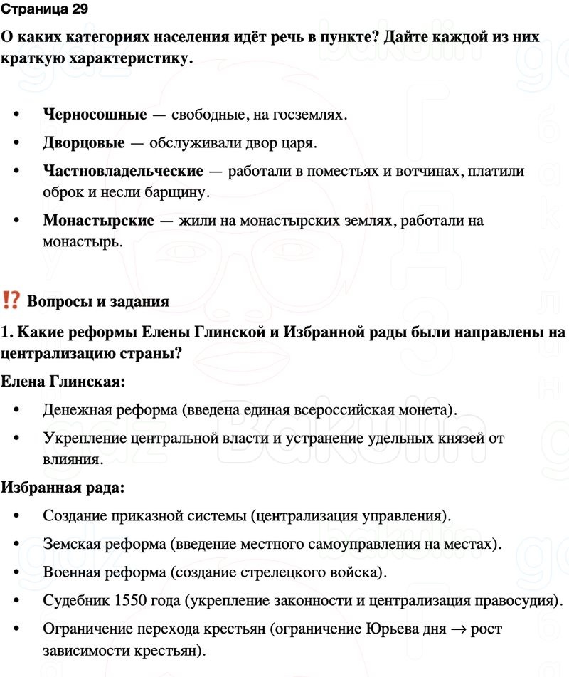 1. Какие реформы Елены Глинской и Избранной рады были направлены на централизацию страны?