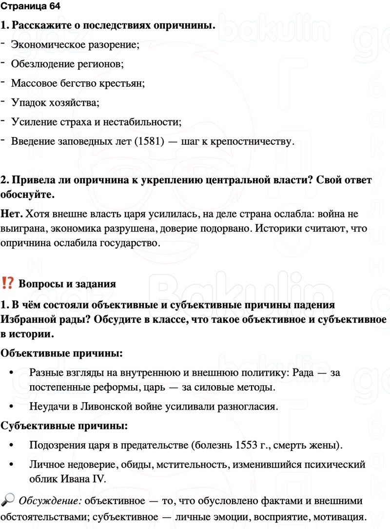 1. В чём состояли объективные и субъективные причины падения Избранной рады? Обсудите в классе, что такое объективное и субъективное в истории.