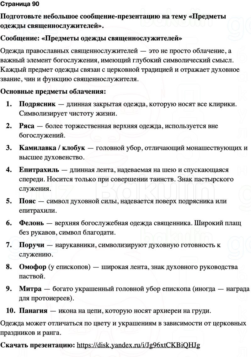 Подготовьте небольшое сообщение-презентацию на тему «Предметы одежды священнослужителей».