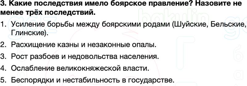 3. Какие последствия имело боярское правление? Назовите не менее трёх последствий.