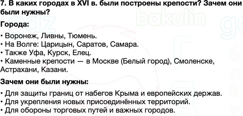 7. В каких городах в XVI в. были построены крепости? Зачем они были нужны?