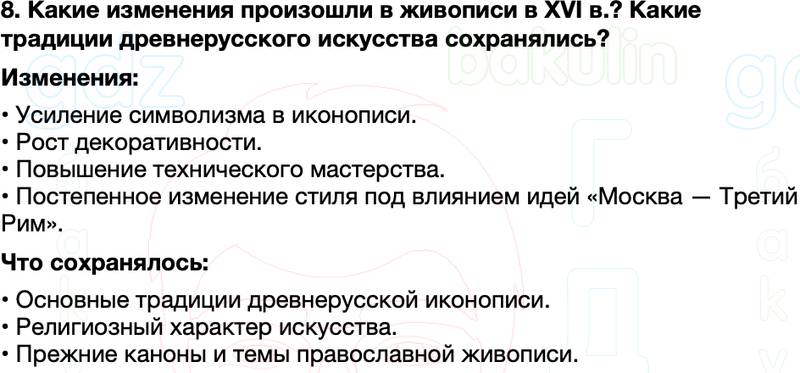8. Какие изменения произошли в живописи в XVI в.? Какие традиции древнерусского искусства сохранялись?