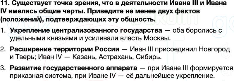 11. Существует точка зрения, что в деятельности Ивана III и Ивана IV имелись общие черты. Приведите не менее двух фактов (положений), подтверждающих эту общность.