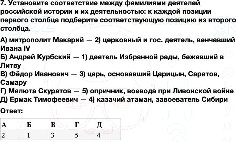 Правильный ответ к заданию ГДЗ История России Рабочая тетрадь 7 класс Пазин, Андреев