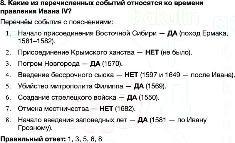 8. Какие из перечисленных событий относятся ко времени правления Ивана IV?