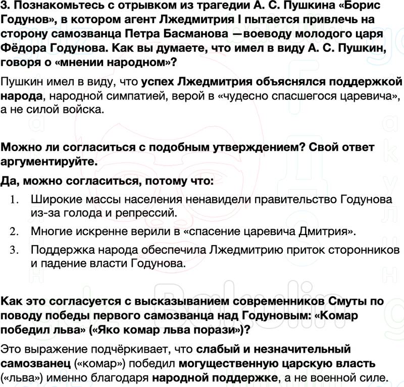 3. Познакомьтесь с отрывком из трагедии А. С. Пушкина «Борис Годунов», в котором агент Лжедмитрия І пытается привлечь на сторону самозванца Петра Басманова —воеводу молодого царя Фёдора Годунова.