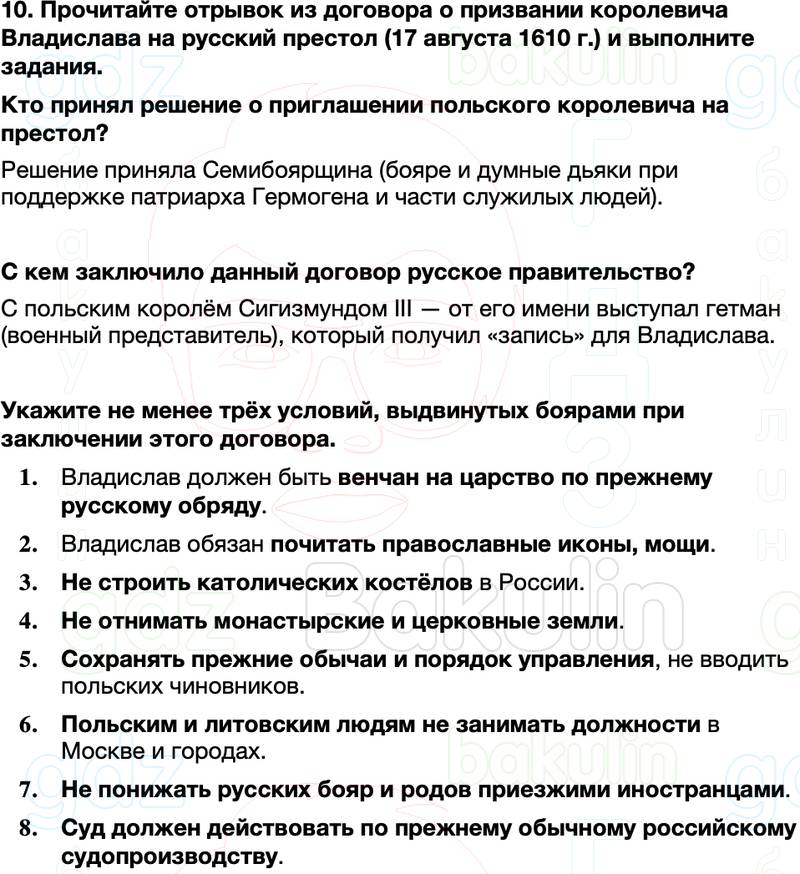 10. Прочитайте отрывок из договора о призвании королевича Владислава на русский престол (17 августа 1610 г.) и выполните задания.