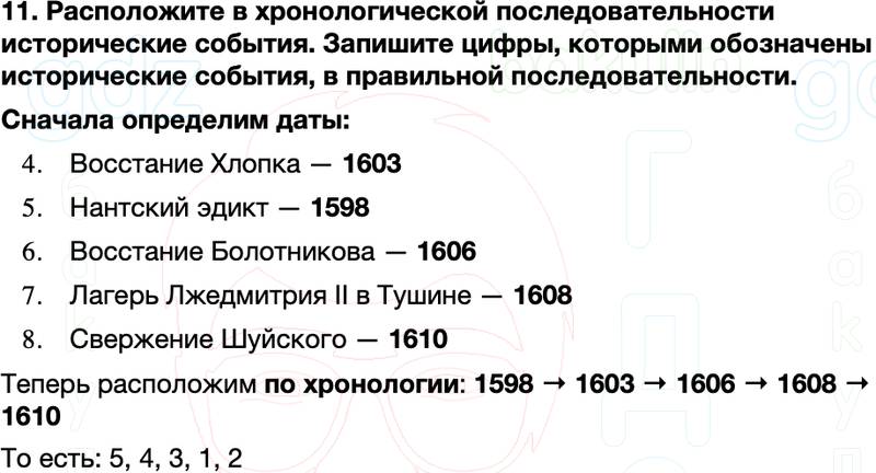 11. Расположите в хронологической последовательности исторические события. Запишите цифры, которыми обозначены исторические события, в правильной последовательности.