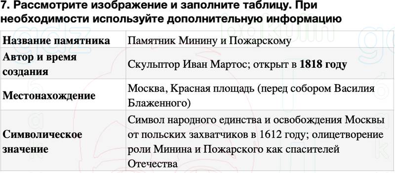 7. Рассмотрите изображение и заполните таблицу. При необходимости используйте дополнительную информацию