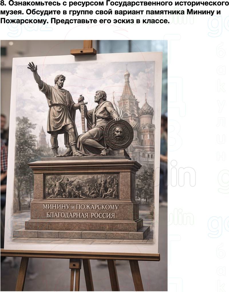8. Ознакомьтесь с ресурсом Государственного исторического музея. Обсудите в группе свой вариант памятника Минину и Пожарскому. Представьте его эскиз в классе.