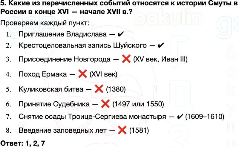 5. Какие из перечисленных событий относятся к истории Смуты в России в конце XVI — начале XVII в.?
