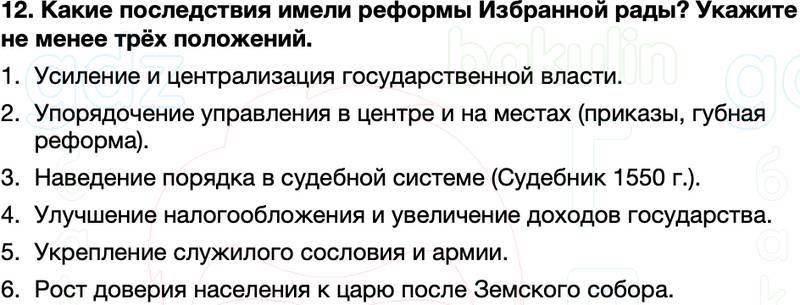 12. Какие последствия имели реформы Избранной рады? Укажите не менее трёх положений.