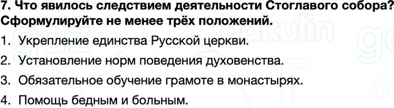 7. Что явилось следствием деятельности Стоглавого собора? Сформулируйте не менее трёх положений.