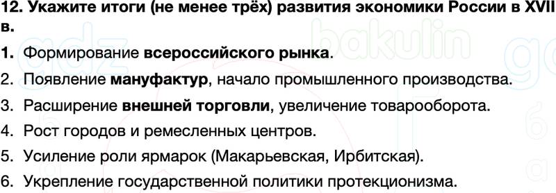 12. Укажите итоги (не менее трёх) развития экономики России в XVII в.