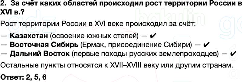 Правильный ответ к заданию ГДЗ История России Рабочая тетрадь 7 класс Пазин, Андреев