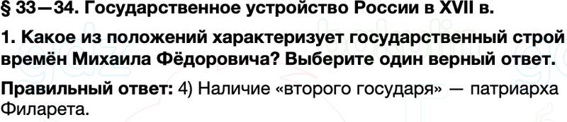 1. Какое из положений характеризует государственный строй времён Михаила Фёдоровича? Выберите один верный ответ.