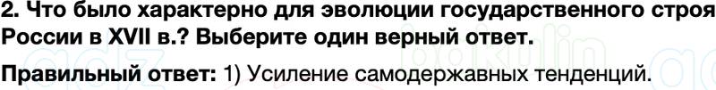2. Что было характерно для эволюции государственного строя России в XVII в.? Выберите один верный ответ.