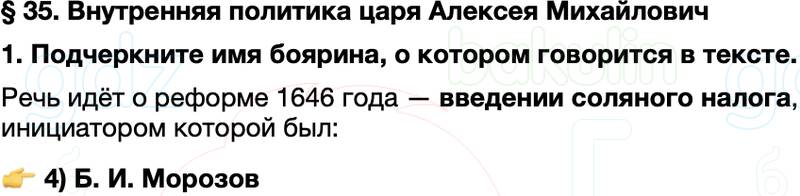 § 35. Внутренняя политика царя Алексея Михайлович, номер 1